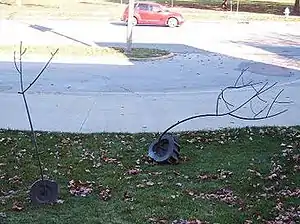Anatomy Vessels (Saplings), 2003–05, is a public sculpture created by Indiana-based artist Eric Nordgulen (American born 1959),[1] Associate Professor of Sculpture at Herron School of Art and Design. The sculpture is located on the Indiana University-Purdue University Indianapolis (IUPUI) campus at the Herron School of Art and Design, 735 W. New York Street in Indianapolis, Indiana in the United States. It was selected in 2005 for the Herron Gallery first Sculpture Biennial Invitational to be exhibited in the Herron Sculpture Gardens.[2] The two-part cast and fabricated bronze sculpture represents two life size sapling trees with bound root balls.