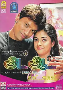 S. J. Suryah announced a film titled Isai in 2004 shortly after the release of New, when he revealed that A. R. Rahman would also collaborate for two further ventures titled Anbulla Nanbane and Aezhumazhai vs Chitra.[1] While Isai was postponed, Anbulla Nanbane developed under the title Best Friend, before the title Anbe Aaruyire (2005) was finalised, from the 1975 film.[2] The film was initially titled BF, an initialism of Best Friend, but Suryah was met with a protest from Tamil Protection Movement led by PMK leader Ramadoss and Dalit Panthers of India leader Thol. Thirumavalavan to change the title. After three months of its launch, Suryah changed the name from BF to Ah Aah, the first two letters in the Tamil alphabet.[3] Featuring himself in the lead role again, he signed up newcomer Meera Chopra for the film and rechristened her under the stage name Nila, after initially considering the stage name of Junior Simran, owing to her resemblance to Simran. He revealed that he was inspired to make the film to convey that young lovers must give each other space and wanted to showcase that attitudes towards relationships by the Indian youth was changing from the previous decade.[4][5] He also called the film a "sequel to Kushi (2000)", revealing that the film's lead actors would have similar ego clashes.[6]