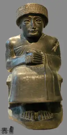 A major improvement came in 2150 BCE during the Akkadian Empire under the reign of Naram-Sin when the competing systems were unified by a single official standard, the royal gur-cube.[2] His reform is considered the first standardized system of measure in Mesopotamia.[2] The royal gur-cube (Cuneiform: LU2.GAL.GUR, 𒈚𒄥; Akkadian: šarru kurru) was a theoretical cuboid of water approximately 6 m × 6 m × 0.5 m from which all other units could be derived. The Neo-Sumerians continued use of the royal gur-cube as indicated by the Letter of Nanse issued in 2000 BCE by Gudea. Use of the same standard continued through the Babylonian, Assyrian, and Persian Empires.[1]