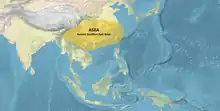 Ancient DNA of first farmer individuals from Mainland Southeast Asia dated at c. 4kya derives most of its ancestry from the ASEA lineage, with significant admixture from a local hunter-gatherer population.[lower-alpha 1] This Neolithic Mainland Southeast Asian ancestry peaks among modern populations in Austroasiatic-speaking groups of Southeast Asia (most notably in the Mlabri and Htin peoples in northern Laos and Thailand) and parts of East Asia and South Asia. Hence, the first spread of farming in Mainland Southeast Asia is widely assumed to be linked to the expansion of the Austroasiatic languages.[8][6] From Mainland Southeast Asia, this Austroasiatic-related ancestry spread into Insular Southeast Asia to the Sunda Islands,[8] adjacent areas (viz. Palawan, Mindanao) of the Philippines,[11] and western Wallacea,[12][13] although there are no remaining Austroasiatic languages spoken in this area, having been supplanted by incoming Austronesian languages.