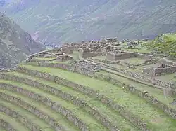 Agricultural terraces have been built and used by farmers around the world for thousands of years, mainly for the purpose of permitting cultivation on steep hillsides. The origin of terraces or andenes in the Andes is poorly understood, but they were being built by 2000 BCE. Agriculture became essential for the subsistence of a growing population after 900 BCE. People of the Huarpa culture and the later Wari culture (500–1000 CE) built terraces into the hillsides of the Andes in Peru.[4] During the Inca Empire (1438–1533 CE) the technology and the quantity of land devoted to andenes reached their highest levels. Archaeologists estimate that andenes covered about 1,000,000 hectares (2,500,000 acres) of land[5] and contributed substantially to feeding the approximately ten million people ruled by the Incas.[6][lower-alpha 1]