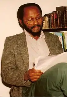 André Pakosie has written more than 30 books as of 1972, in the following languages: Dutch, Sranan Tongo and the Ndyuka or Okanisi language. The books are mainly about the history of Suriname and culture of the Maroons.[4] The Ndyuka mainly have an oral tradition, and to encourage the development of writing, Pakosie had founded in 1974 the National Institute to Combat Illiteracy in Suriname,[5] of which he had been the director. Pakosie is editor-in-chief of the Marron magazine Siboga in which he has published extensively. He has also published among others in the Weekkrant Suriname, Trouw.,[4] Volksnieuws, De Gids, Journal of Legal Pluralism and Unofficial Law (University of Birmingham, England) and New West Indian Guide/Nieuwe West-Indische Gids. As Edebukuman of the Afáka syllabary, he is working to systematize that script.