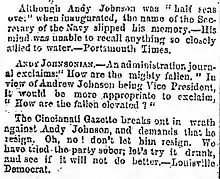 - ↑ "The Vice President's Critics". The Selinsgrove Times-Tribune. Selinsgrove, Penn. March 31, 1865. p. 1. Retrieved 2023-07-08.