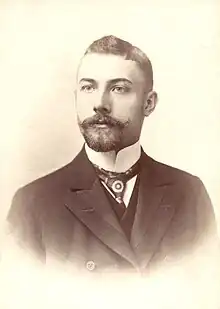 While Kusionowicz was the editor, Gwiazdka Cieszyńska had continued to espouse the ideals of Paweł Stalmach in advocating support of many social causes ranging from improving the welfare of the poor to progressing literacy and education levels, especially among the ethnic Poles in Silesia and Galicia. Andrzej also worked as secretary of the Cieszyn Education Society (pl), of which Stalmach was the President, and completed his studies for a doctorate of law from Jagiellonian University on 14 July 1891.[6][7] That same year he participated with Jan Michejda (pl), Ignacy Świeży (pl), Hilary Filasiewicz (pl), Antoni Dyboski, Adam Sikora (pl) (1846-1910), Szczepan Chrapek, Mieczysław Kopciński, Bolesław Rzepecki and Maryan Lanikiewicz in setting up the Cieszyn branch of Sokół ('Falcon').[8]