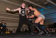 Williams (left) wrestling Tarik at a Smash Wrestling event