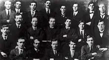 The Tredegar Query Club by friends including Aneurin Bevan and Walter Conway. Conway is in the middle of the picture. Aneurin is second from right on the back row and his brother Billy is second right on front row.[14]