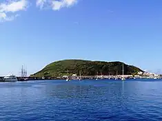 - Hermitage of Nossa Senhora da Guia (Portuguese: Ermida da Nossa Senhora da Guia/Capela de Nossa Senhora da Guia), a Property of Public Interest,[23] the hermitage of Our Lady of the Guide, located on the southern volcanic cone, Monte da Guia, was originally constructed by Captain-major Tomaz de Pórras Pereira, around 1600, but found in almost a complete state of ruins by 1700.[24][25] Father António de Jesus Maria began a campaign to reconstruct the chapel, it was reopened on May 12, 1714, and the image from the Church of San Francisco was led in procession by clergy, standards and the faithful in a solemn procession to the hilltop, where the island confessor Gaspar Pereira de Lacerda led benedictions.[24][25] It plays an integral part in the religious ceremonies of the annual Sea Week Festival (Portuguese: Semana do Mar): a procession accompanies the image of the Virgin Mary from the chapel to the beach at Porto Pim, where it is transported by boat and accompanied by a flotilla of ships to the main marina in Horta. From here, a secondary procession accompanies the image to the Church of Nossa Senhora das Angústias, where another mass is recited for the faithful. This religious celebration is traditionally escorted by local fisherman, as the Virgin Mary, in this role, is the patron saint of fishermen;