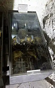Anna's grave in Haschbach am Remigiusberg (with a sign calling her Anna Maria)