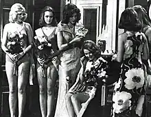 Anneli Björkling (sitting) receives the crown at the Miss Scandinavia pageant in Tampere, October 1972.
