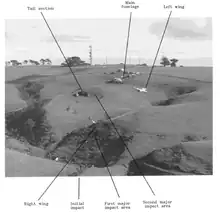 Flight 703 flew into rising terrain, striking high ground twice before the final impact, yawing to the right and breaking up as it slid along the ground. The fuselage came to rest 235 m (771 ft) from the site of initial impact. The right main landing gear that the pilots were trying to extend was found still in the retracted position.[3]