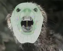 Props for the more violent scenes were provided by the company Soda ApS, and made in their workshop in Nørrebro, Copenhagen. Plaster casts were made of Willem Dafoe's leg and the female "porno double's" vulva. A plastic baby with authentic weight was made for the opening sequence. Pictures found using Google Image Search had to serve as models for the stillborn deer, and a nylon stocking was used as caul. The vulva prop was constructed with its inner parts detachable for easy preparation if several takes would be needed.[28] Czech animal trainer Ota Bares, who had collaborated with parts of the crew in the 2005 film Adam's Apples, was hired early on and given instructions about what tasks the animals must be able to perform. The fox, for example, was taught to open its mouth on a given command to simulate speaking movements.[29]