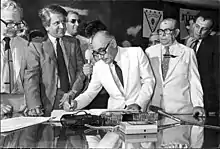 Born in Buenos Aires to Lebanese Argentine immigrants, he was affiliated to Boca Juniors since his youth. He worked as a construction laborer, and eventually became a prosperous businessman as the proprietor of the Alegre Pavement Company. Fond of ping pong, his affable manner helped earn him the friendship of numerous important figures in Argentine politics,[5] including UCR leader (and future President) Raúl Alfonsín, Peronist lawmaker Antonio Cafiero, and numerous members of the CGT trade union. Appointed director of the Buenos Aires Province bureau of the National Nutritional Plan by the newly elected President Alfonsín,[5] Alegre was encouraged to run for the post of President of Boca Juniors by influential friends, and in 1984 became a candidate to succeed Federico Pollack, whom Alfonsín had appointed federal receiver.[2]