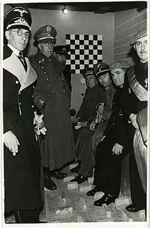 After the Civil War ended, he was appointed Inspector General of the new Policía Armada,[8] and as such he was part of the delegation that visited Nazi Germany in September 1940.[9] The following month, he was one of the personalities that received Reichsführer-SS Heinrich Himmler in San Sebastián, during the Himmler's visit to Spain.[8]