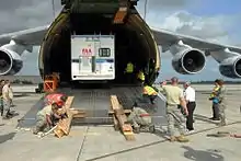 Mobile air traffic control tower loaded onto an An-124 to Haiti