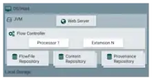 NiFi is a Java program that runs within a Java virtual machine running on a server.[10] The prominent components of Nifi are: