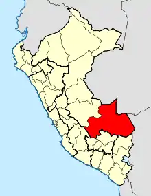 The Apostolic Vicariate of Puerto Maldonado (Latin: Vicariatus Apostolicus Portus Maldonadi) is a Latin Church apostolic vicariate of the Catholic Church in Peru. Its cathedra is located in the episcopal see of Puerto Maldonado.