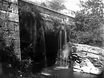 The Catoctin Aqueduct (#3) crosses Catoctin Creek in Frederick County. This aqueduct, completed in 1834, was also called the "Crooked Aqueduct" because of the sharp turns before and after it on the canal. Recklessness among boatmen (usually because of speeding) resulted in accidents, damaging the sides of the aqueduct. In March 1870, the board ordered that all boats should slow down 50 yards from the aqueduct, and stationed a watchman to ensure compliance, as well as printing handbills to that effect.[3]: 811 Boatmen called this creek "Jug Creek."[4]: 88