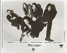 Arcade was an American glam metal supergroup formed in 1992 by ex-Ratt vocalist Stephen Pearcy, Cinderella drummer Fred Coury among others. The band featured ex-Sea Hags guitarist Frankie Wilsey, ex-Gypsy Rose guitarist Donny Syracuse, and ex-9.0 bassist Michael Andrews. Its originally proposed name was to be Taboo.[1]