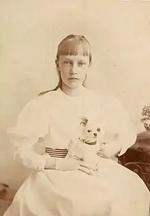 After Rudolf's death, Franz Joseph took over guardianship of Erzsi; by his order, she was forbidden to leave Austria with her mother.[2] At a young age she displayed a strong personality, as well as an opposition to the Viennese court.