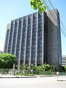 The modernist principles were still in use, as an extension of the Athens Charter, which was endorsed by the new Master Plan of 1979, although some innovations were introduced, such as an inspiration in the superblocks model used in Brasília and greater community participation in decisions through Municipal Councils.[20] The overall quality of the buildings, however, declined. On the other hand, academia was already starting to review Modernism, and the influence of Uruguayan architects became significant, introducing new technical resources such as reinforced ceramics. Some of the most prominent works in this period were the State Administrative Center, by Charles Hugaud, Cairo da Silva and others; the Central Supply Station, by Carlos Fayet, Carlos Comas, and Cláudio Araújo; and the Memphis industries buildings, by Araújo and Cláudia Frota.[26]