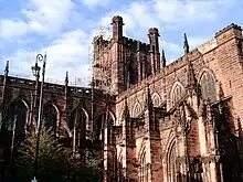 The Decorated Gothic exterior of Chester Cathedral.