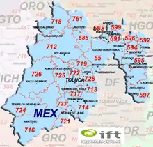 1. "Area Codes Maps and Stats". www.ift.org.mx. Instituto Federal de Telecomunicaciones. Retrieved 7 November 2018.