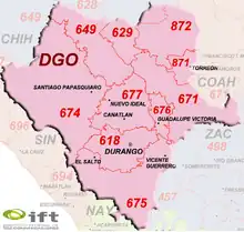 - ↑ "Area Codes Maps and Stats". www.ift.org.mx/. Instituto Federal de Telecomunicaciones. Retrieved 2018-11-07.