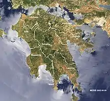 Argon Pedion (Greek: Ἀργὸν Πεδίον, lit.'untilled plain') is the geological name of a "closed karst basin" in the Arcadian highlands in the Peloponnese peninsula of southern Greece. The first known appearance of this name was in a publication by the ancient geographer Pausanias (110–180 AD). He called it untilled plain, because the grassland and acres may be flooded beyond the time when annual vegetation starts. When the winter rains were very heavy, floods can even turn the plain into a temporary lake. Intensive karst formation (drainage in underground waterways of limestone layers) prevents the formation of a permanent lake. In rare cases, even today, modern technologies can not prevent flooding.