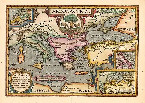 Map interpreting the voyage according to Apollonius Rhodius' Argonautica, reprint of Ortelius' Parergon, 1624