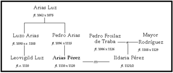 - ↑ Cf. Fletcher, 158–59, for a discussion of the relationship between Luzo Arias and the brothers Alfonso and Juan Ramírez (fl. 1095–23), dating from 1075.