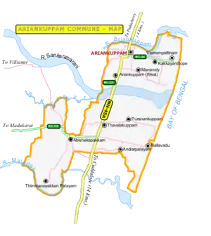 Ariyankuppam (also known by its former name Ariancoupom) is a Town,[1] Commune, Sub-Taluk, and Assembly Constituency in the Union Territory of Puducherry, India. The streets in Ariyankuppam are straight and in grid form, similar to Puducherry boulevard.