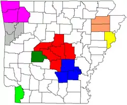 The State of Arkansas has a total of eight metropolitan statistical areas (MSAs) that are fully or partially located in the state. Twenty of the state's 75 counties are classified by the United States Census Bureau as metropolitan.