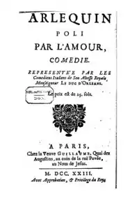 ![]() Front page of 1723 Edition of Arlequin poli par l'amour | |