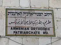 Armenian Orthodox Patriarchate Rd. signs in Hebrew (top), Arabic (middle), English (bottom) and Armenian (bottom photo)