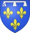 Azure, three fleurs-de-lys or, a label argent.[8]