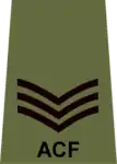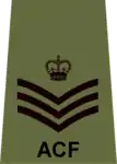The adults who help to run the ACF are collectively known as Cadet Force Adult Volunteers (CFAVs). CFAVs wear the badges of rank as worn by Army NCOs[38] with the addition of the letters ACF under the badge.[47]