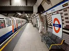 The suffix was dropped from the station's name some time around 1960, giving the current name of Arsenal.[lower-alpha 2] The original tiled walls of the platforms still bear the Gillespie Road name, spelt out in large letters.[16] In 2007, the station underwent a major upgrade;[17] as part of this the wall tiling was completely restored, the floor resurfaced and an electronic Tannoy system was introduced.[18]