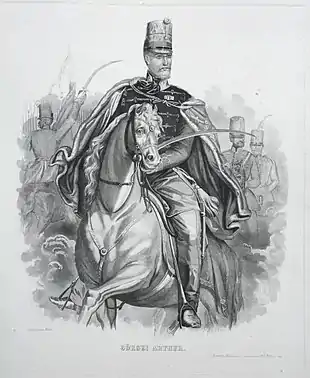 Despite this, in his letters he wrote that he despised the life of a soldier because he had to obey officers whom he did not respect and that he dreamed about a free and active life that he could not find in the army.[4] Following graduation, he served in the Nádor Hussar regiment, undertaking the role of adjutant. By 1837, he had reached the rank of lieutenant and entered the Hungarian Noble Guard at Vienna, where he combined military service with a course of study at the university.[1]