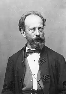 Among the generals whom the Hungarian officers would accept as the supreme commander, Görgei was the most popular; and in an officers meeting held in Tiszafüred, in the presence of the government's chief commissary Bertalan Szemere, they elected Görgei as the commander-in-chief, with their decision ratified by Szemere. When Kossuth heard about this, he was angered and rushed to the military camp, thinking that Görgei was its organizer and declaring that he would order Görgei executed for this revolt. But when he arrived at Tiszafüred and saw that the majority of the officers supported Görgei, Kossuth was forced to accept the situation. However, he declared that the final decision about who would be the commander would be announced after he presented the facts to the Parliament.[28] In Debrecen, Kossuth and his political supporters ignored the wishes of the Hungarian generals to name Görgei and designated Antal Vetter as commander-in-chief.[29] On 8 March, by way of consolation, Görgei was decorated with the Second Class Military Order of Merit.[30]