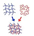 Structure of a double network hydrogel can be seen by combining the blue and red hydrogel shown.
