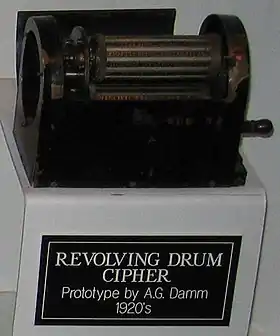 | Cylinder cipher | 1918 | Only a prototype produced. | |