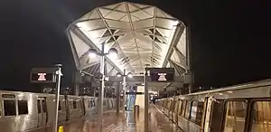 MWAA declared the work on the rail line to be "substantially complete" in November 2021. However, WMATA estimated that it could take five months of testing and other preparations before passenger service could begin.[18] Simulated service testing began operating along the Phase 2 tracks in October 2022.[19][20][21] Phase 2 formally opened on November 15, 2022.[22]