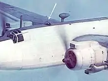 Similar hemispherical-shaped domes were also installed on some Second World War era heavy bombers for the purpose of sighting of their defensive gun turrets, particularly those that were remotely operated. Examples of such installations include the German Heinkel He 177A, which had a single forward dorsal dome to aim its remotely operated FDL 131 twin MG 131 dorsal turret, and the American Boeing B-29 Superfortress heavy bomber, which had used a dome in its complex sighting system for its quartet of remote gun turrets.[8][9] On the B-29, the bonding of the astrodome was designed so that it would generate only minimal radio interference via static electric discharges.[10]