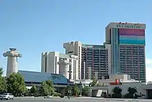 The Atlantis Casino Resort Spa (formerly Golden Road Motor Inn, Travelodge, Quality Inn and Clarion) is a hotel and casino located in Reno, Nevada. It is owned and operated by Monarch Casino & Resort, Inc. Its three hotel towers have a combined 824 guest rooms and suites. The casino floor spans 64,814 sq ft. Often known simply as "Atlantis," it is one of Reno's most profitable and luxurious properties, competing directly with Peppermill Hotel Casino and Grand Sierra Resort for customers.[1] Nearly $150 million has been spent on upgrading the facility.