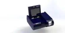 APPI has also been effectively applied for ambient ionization applications lending itself to several practical configurations. One configuration termed desorption APPI (DAPPI) was developed by Haapala et al. and is pictured in the figure here. This device has been applied to the analysis of drugs of abuse in various solid phases, drug metabolites and steroids in urine, pesticides in plant material, etc.[29][30] APPI has also been interfaced to a DART (direct analysis in real time) source and shown for non-polar compounds such as steroids and pesticides to enhance signal by up to an order of magnitude for N2 flow, which is preferred for DART because it is significantly cheaper and easier to generate then the higher performing use of He. Commercial APPI sources have also been adapted to accept an insertable sampling probe that can deliver or liquid or solid sample to the nebulizer for vaporization and ionization. This configuration is similar to atmospheric solid analysis probe (ASAP) that is based on the use of APCI and therefore is referred to as APPI-ASAP. The benefits of APPI-ASAP vs. APCI-ASAP are similar to those observed in LC/MS, namely higher sensitivity to lower polarity compounds and less background signal for samples in complex matrices.[31] Though ambient ionization has experienced a renaissance in the last decades, it has been used in the security industry for many decades, for example in swab detections at airports. The swabs collect condensed phase material from surfaces and are then inserted into a thermal desorber and ionizer assembly that then flows into the ion detector, which in most cases are an ion mobility spectrometer (IMS), but in later cases have been MS analyzers. A picture of a swab-APPI-IMS system used in airports and other security venues is given in the left figure