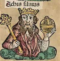 In Roman mythology, Atys /ˈeɪtɪs/ (said to have reigned 989-963 BC)[1] was a descendant of Alba and the sixth king of Alba Longa. Geoffrey of Monmouth asserted in his Historia Regum Britanniae that Silvius (whom he calls "Silvius Epitus") succeeded Alba at the same time that Solomon began to build the Temple in Jerusalem, and king Leil of Britain founded Carlisle.[2] The king is thought to be the Ancestor of Atia gens.[3]