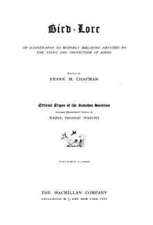 - ↑ Chapman, Frank, ed. (1899). "cover". Bird-Lore. 1 (1).