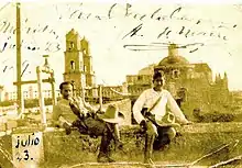 The Salvadoran revolutionary Farabundo Martí (left) and the Nicaraguan revolutionary Augusto C. Sandino (right), on the roof of the Gran Hotel. Mérida, Mexico, 23 July 1929.