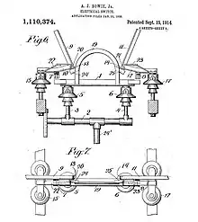 Electrical Switch diagram from US Patent 1110374 by Augustus Jesse Bowie III, 1906