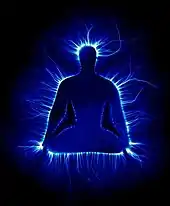 In yoga participants attempt to focus on, or enhance their "auric energy shield".[23] The concept of auric energy is spiritual and is concerned with metaphysics. Some people think that the aura carries a person's soul after death.[24]